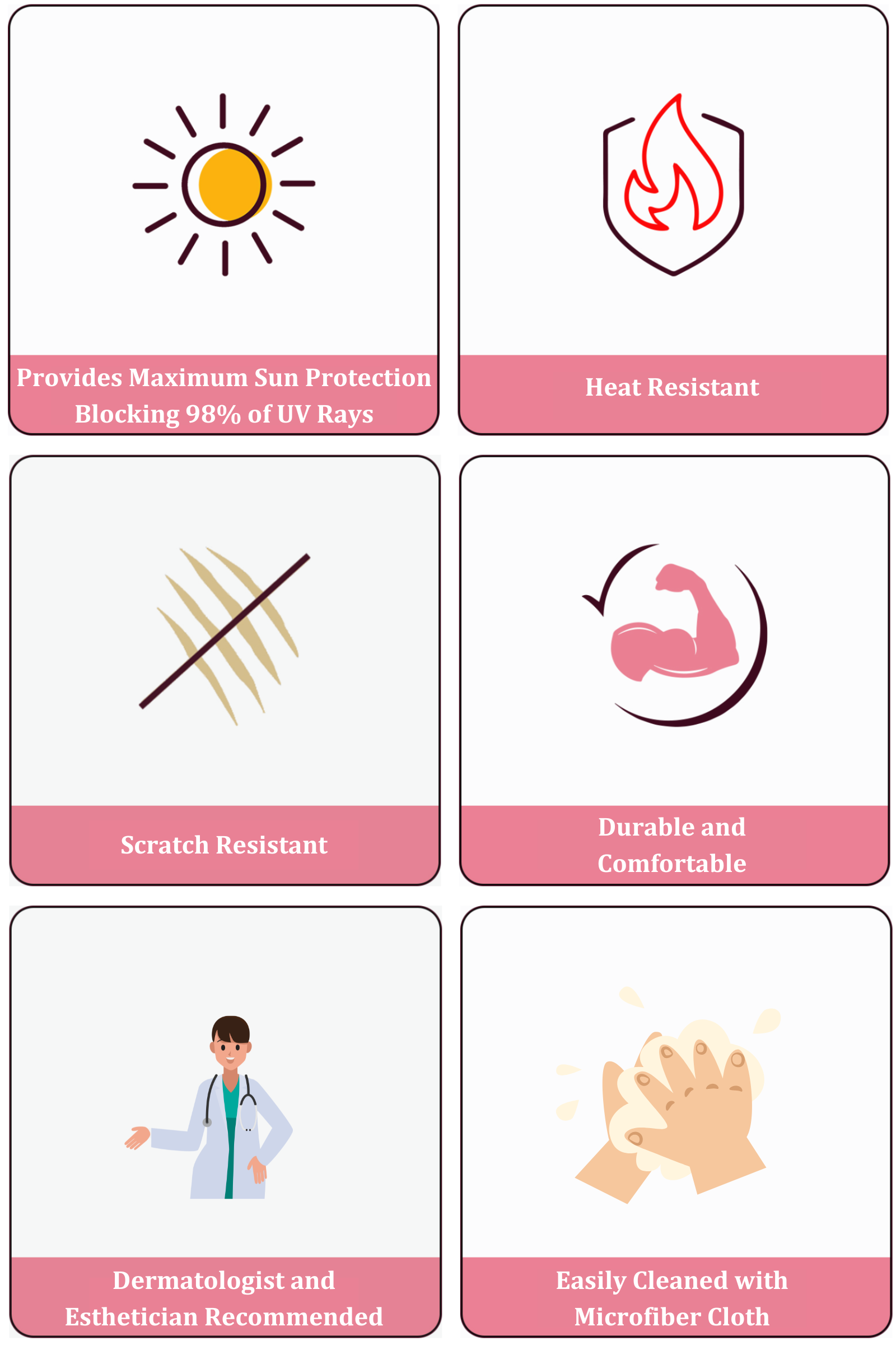 ◦Provides maximum sun protection, blocking 98% + UVA/UVB rays