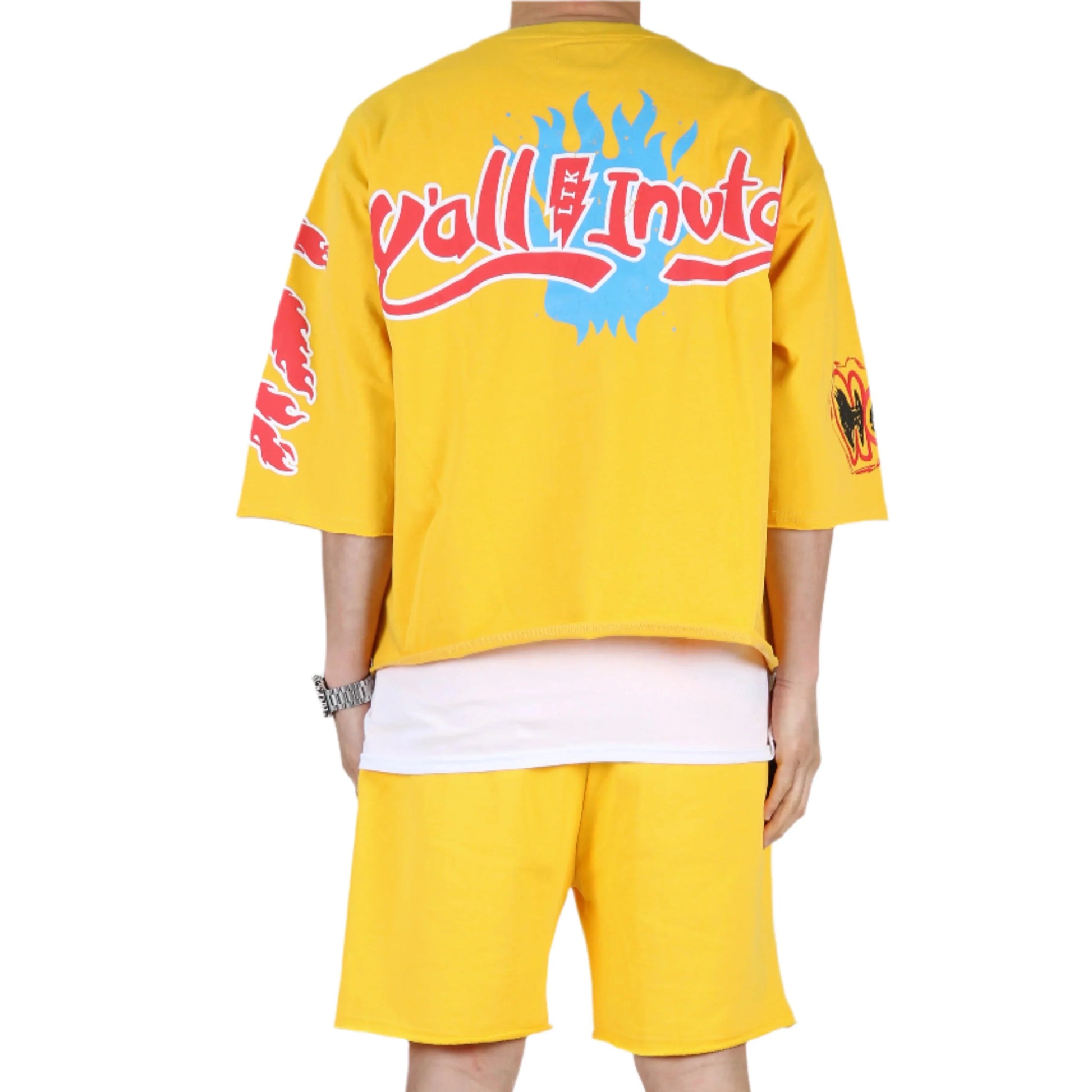- Solid S/N Jersey 3/4 sleeve Crop Top Tee